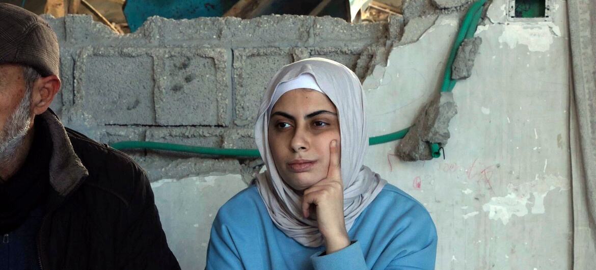 En el barrio de Sheikh Radwan, al norte de la ciudad de Gaza, Layan Abu Qusa, de 16 años y que padece autismo, vive con su familia entre los escombros de su casa destruida, bajo condiciones que su familia dice que han agravado los desafíos diarios asociados a su salud.